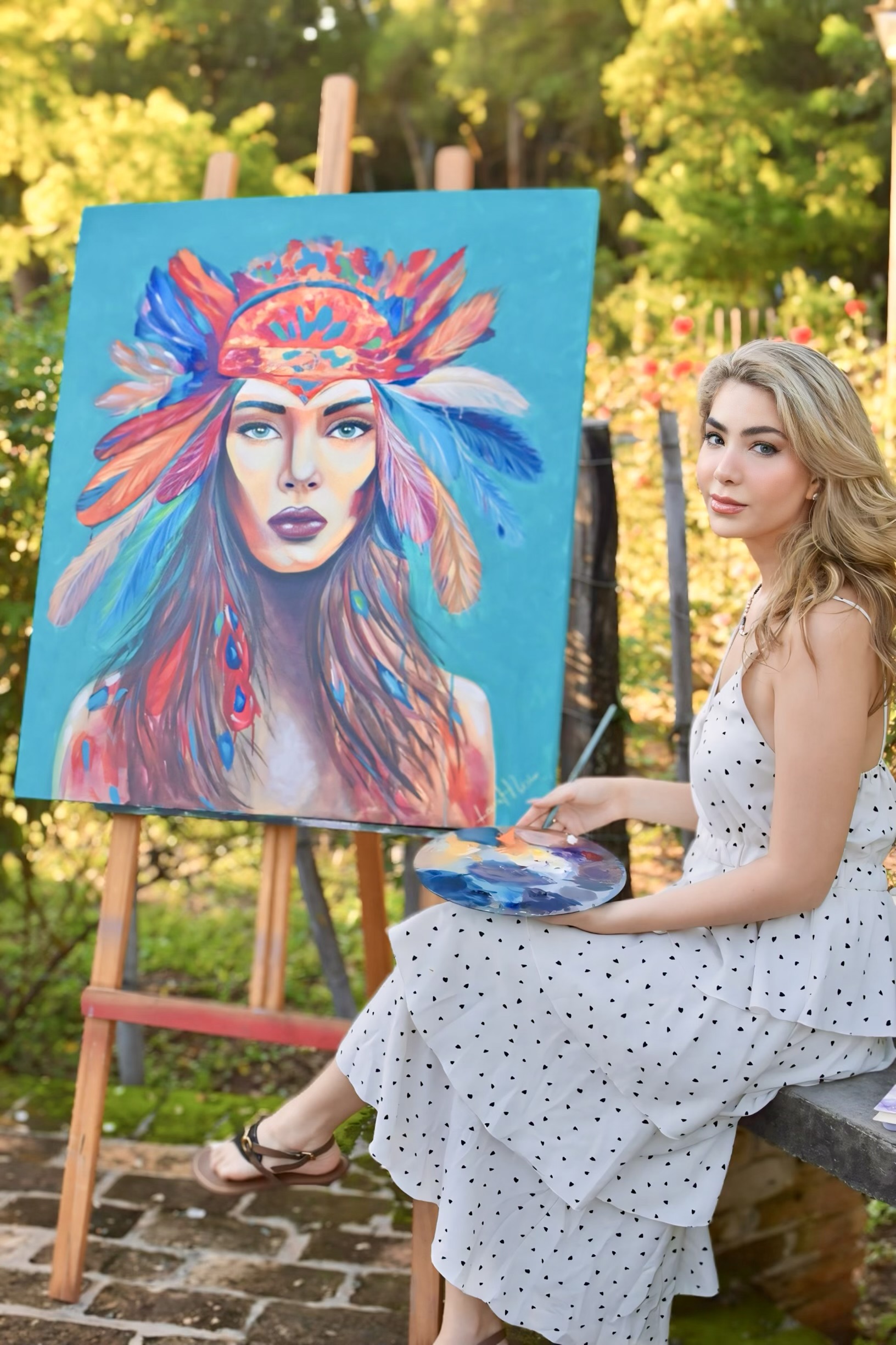 La pinte como una guerrera que tiene una fuerza interna ineludible pero la fuerza no venia de ella, venia del cielo que nunca la habia dejado.Medida 90 x 80 cm Oleo sobre lienzo
